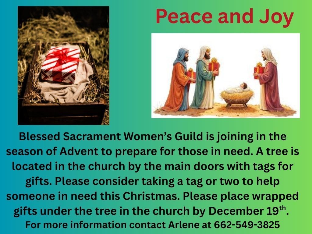 The Mission of Blessed Sacrament Church is to form and sustain a Catholic community in which all are welcomed and provided with the opportunities and means to know Christ better, to grow in faith and love, and to give witness jointly to the Kingdom of God by their lives.