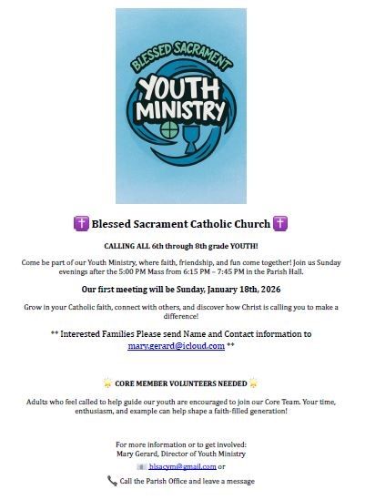 Families must be active Members of the Parish for a child to be eligible to receive any Sacrament. (Active parishioner status must be maintained throughout the years of Sacrament Preparation). Read more