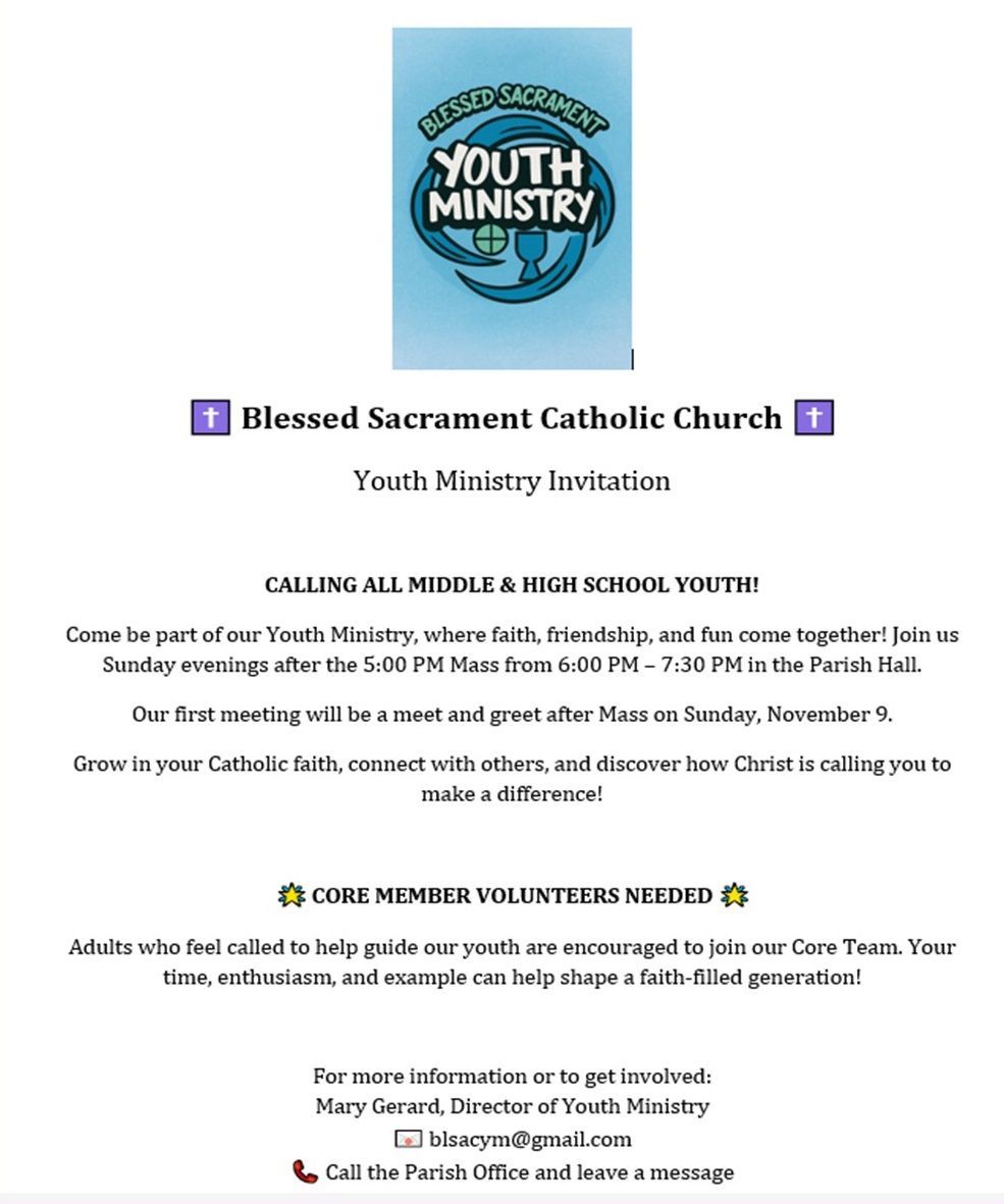 If you are interested in being an adult leader for either group or joining our youth ministry, Please call 843-556-0801